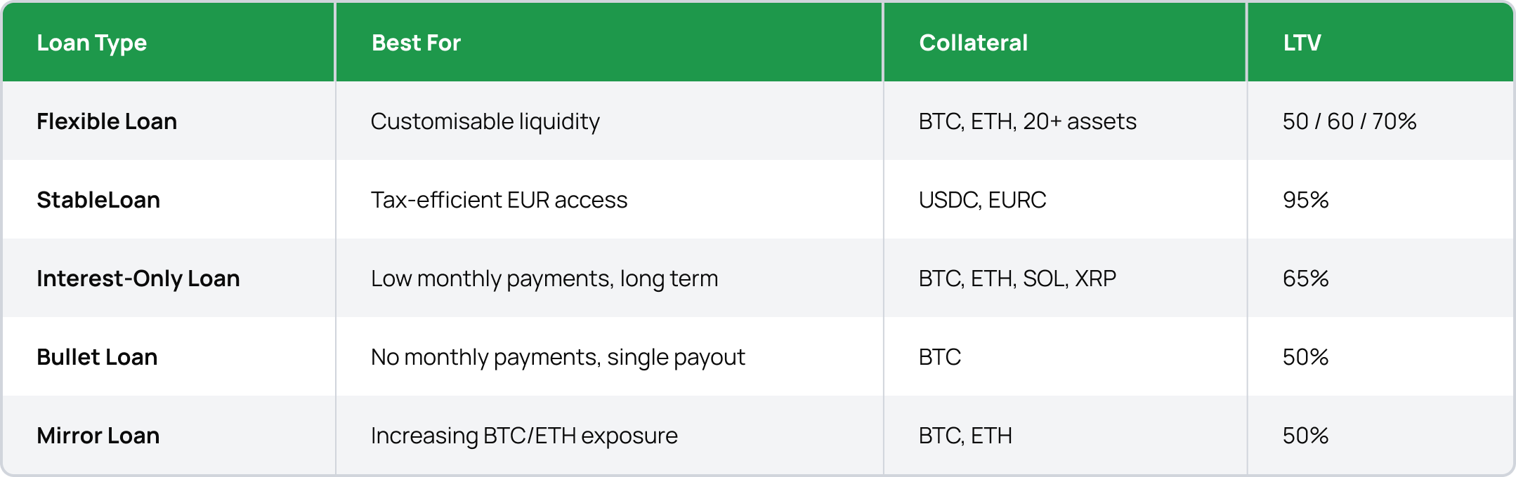 Not sure which fits your situation? Read: Types of Crypto Loans Explained